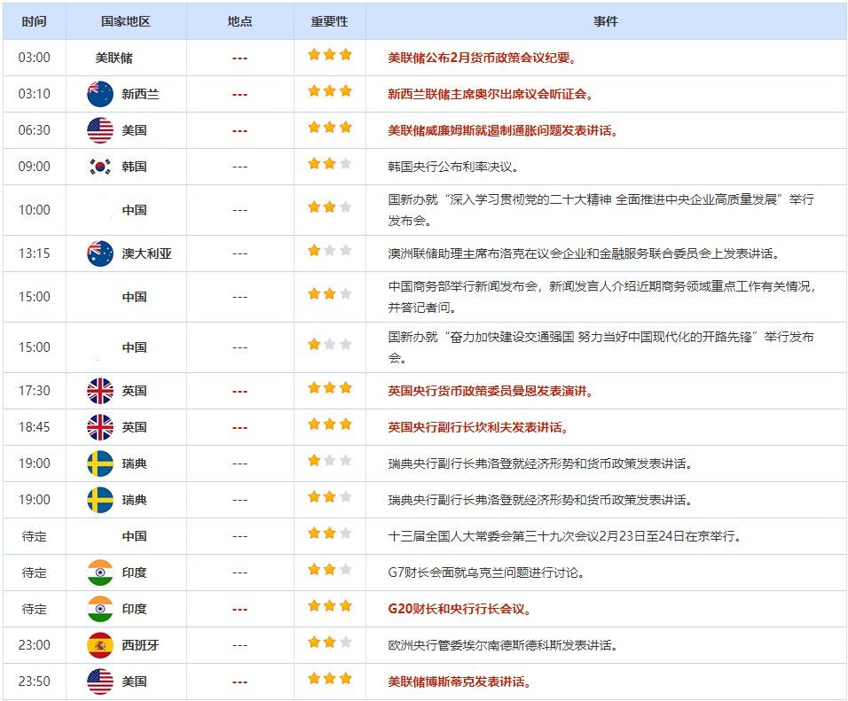 标题:2月23日重点数据和大事件前瞻