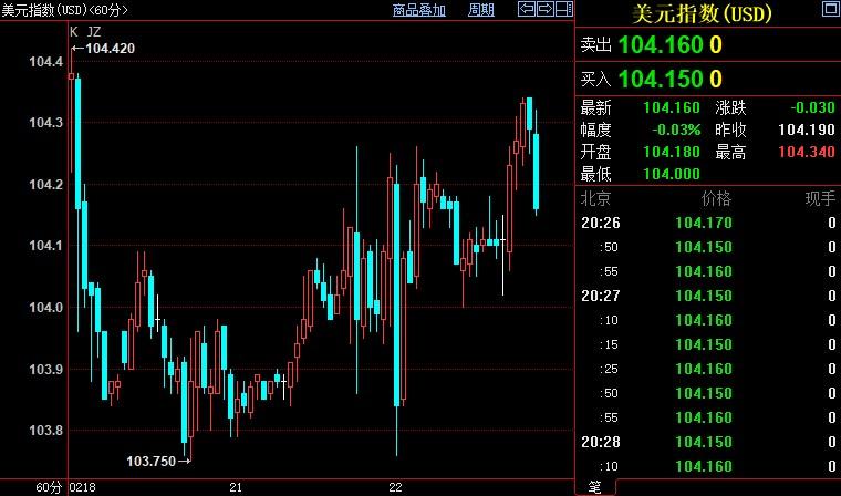 美元指数下跌0.04%至104.162。