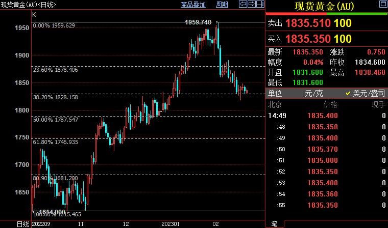 现货黄金上涨0.41%至1842.57美元/盎司;COMEX期金主力合约上涨0.49%至1851.5美元/盎司;