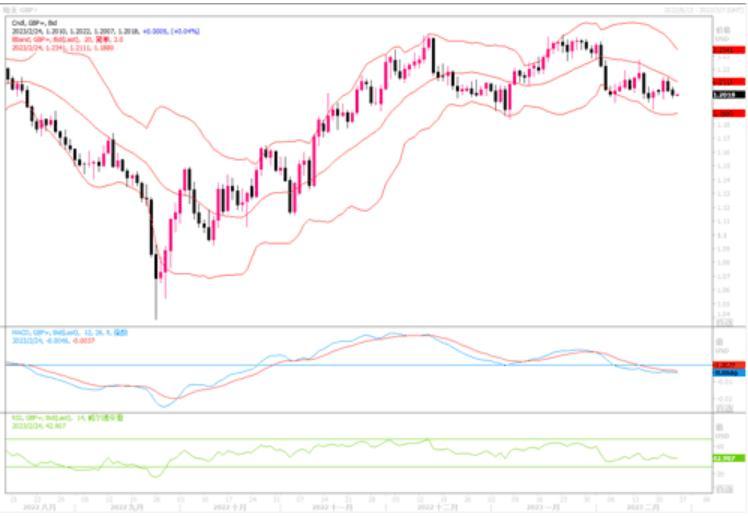 英镑兑美元继续回落0.22%,报1.2017美元,盘中一度跌穿1.20。英国央行货币政策委员会(MPC)委员曼恩表示,现在说去年通胀激增带来的风险已经缓解还为时过早,央行应该继续提高借款成本。但由于其观点并不新鲜,英镑并未得到提振。本周早些时候的PMI调查发出了积极的经济信号,提高了英国央行3月再次加息的可能性。但是,近期积极的经济指标又凸显了英国央行的棘手任务:在降低通胀的同时,如何避免英国经济进一步下滑。因此,利率期货市场上对于英镑的利率定价,其继续上调的空间已变得不大,甚至或会早于美联储停止加息。可以说,近期在加息这方面的角力来说,英镑似乎开始处于下风。日线图上