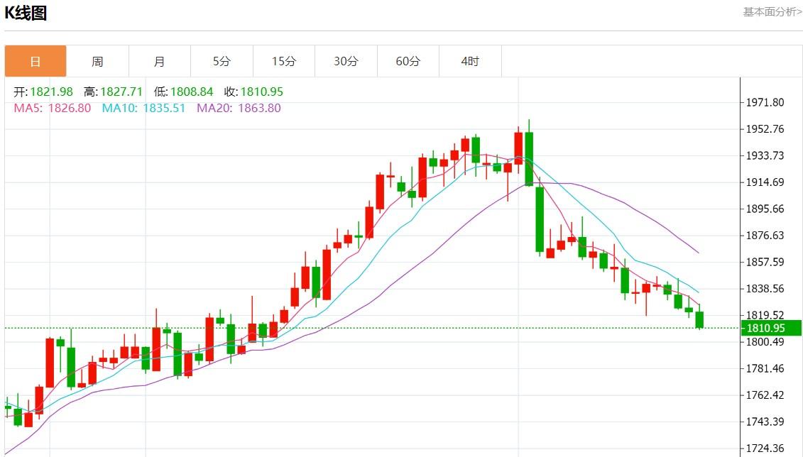 现货白银下跌2.3%,至20.81美元,铂金下跌4%,至909.07美元。