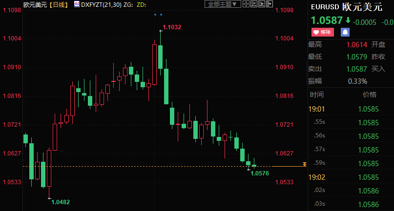 欧元兑美元下跌逾0.9%,创1月6日以来新低至1.0576。机构投资者维持悲观看法背后的原因可能是欧洲央行政策制定者在欧央行利率问题上持鹰派立场,且不惜经济衰退。