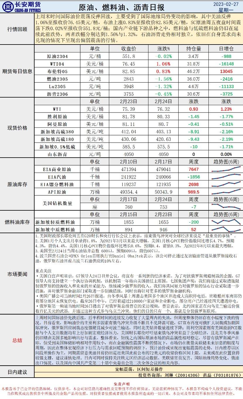 2月27日,长安期货发布原油早评,认为原油价格将宽幅震荡,建议区间短差操作。