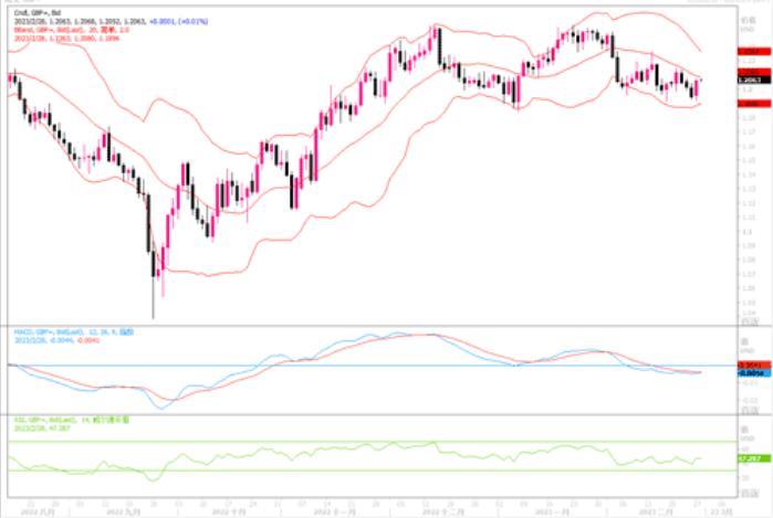 欧元兑美元似乎在1.05之上的水平暂时得到喘息,但整体上还是处于布林带通道下轨之中,上方1.0665构成初步阻力,进而是1.0740。下方若1.05失守,恐有滑向1.04的风险。