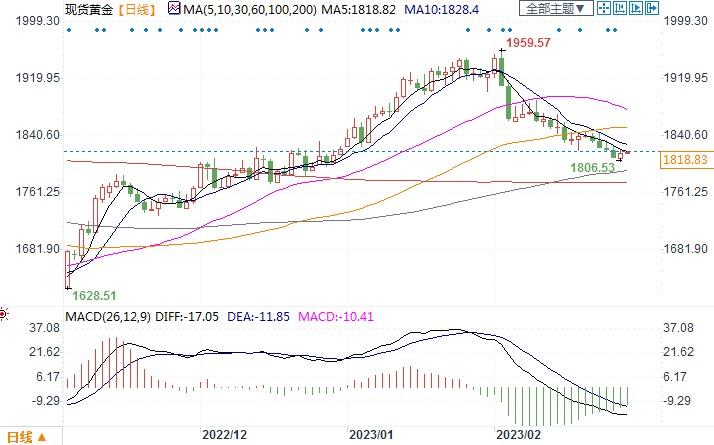 渣打银行贵金属分析师Suki Cooper表示:“金价继续走低,已经接近超卖区域。宏观阻力继续积聚,今年年初推动金价上涨的三大支柱之一已经减弱。由于市场开始过早地预计利率峰值和美元疲软,战术兴趣的转变已经成为支撑,但