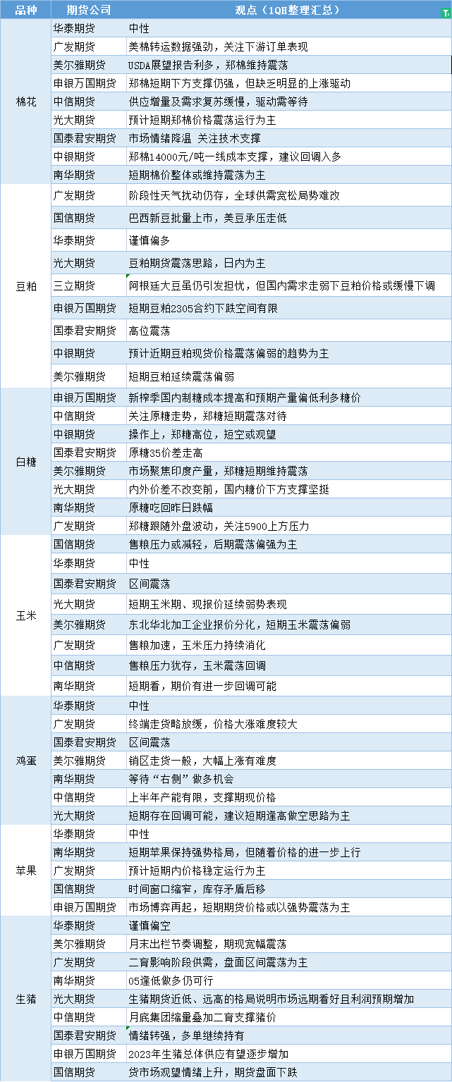 标题:期货公司观点汇总一张图:2月28日农产品(棉花、豆粕、白糖、玉米、鸡蛋、生猪等)