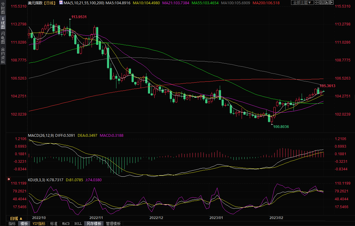 美元指数周二收涨0.33%,报104.99,2月份累计上涨2.8%。
