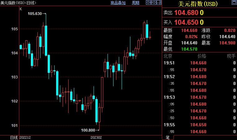 现货黄金跌创去年12月29日以来新低至1804.63美元/盎司,受到美元走强和美联储进一步加息前景的打击。美联储官员称,不幻想通胀将迅速回到美联储2%的目标。两家机构甚至预测美联储3月份重新加速升息。