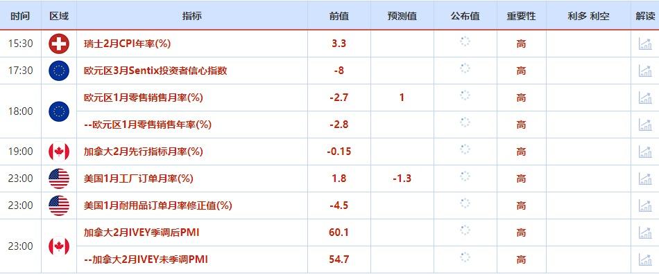 3月6日,欧元区将发布3月Sentix投资者信心指数,料继续处于负值。