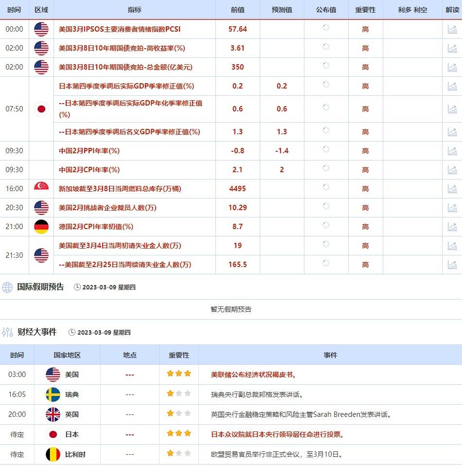 3月9日,美联储经济状况褐皮书,投资者可以从中对美国经济有更深的了解,因此也需引起重视。