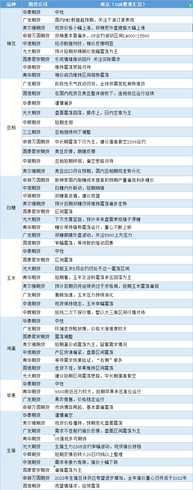 期货公司观点汇总一张图:3月3日农产品(棉花、豆粕、白糖、玉米、鸡蛋、生猪等)