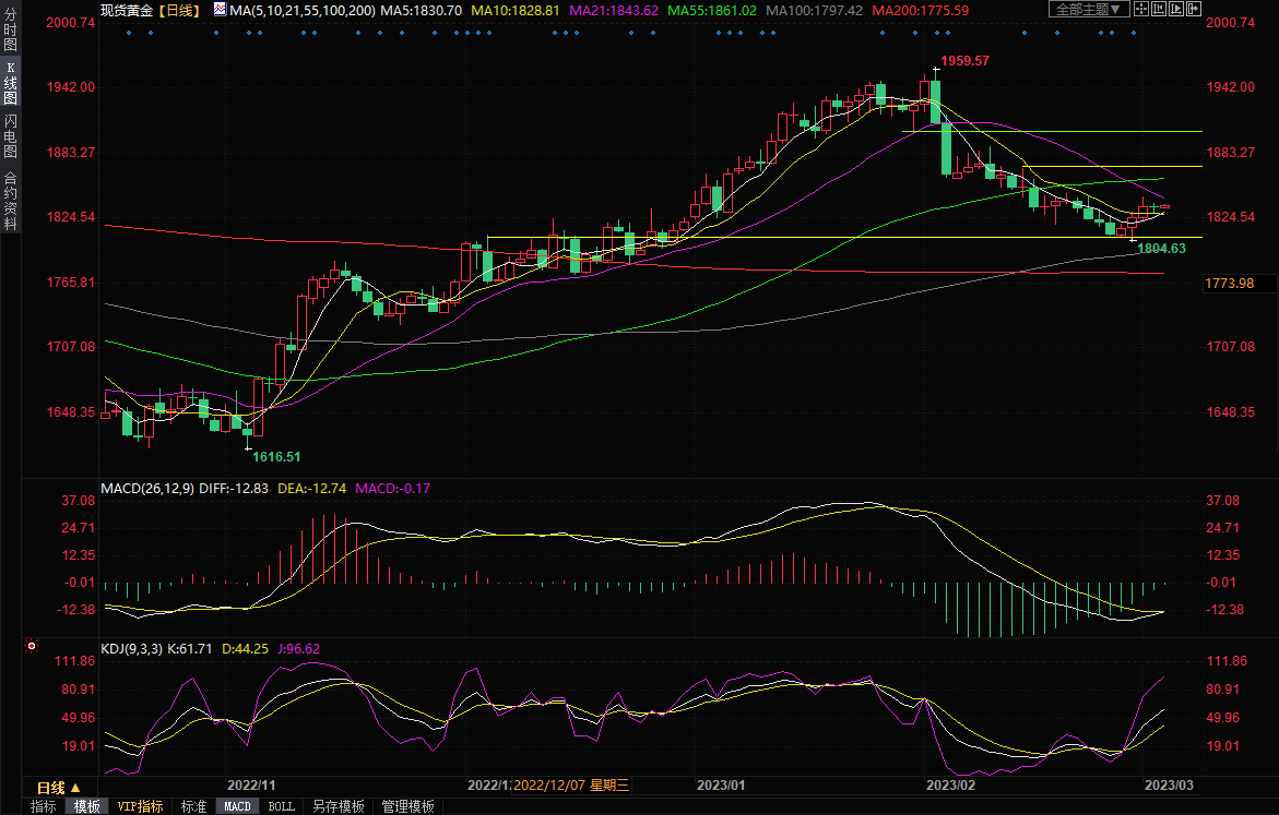 美元指数窄幅震荡,目前交投于104.94附近。美元周四上涨0.57%,稍早的请领失业金数据显示美国就业市场仍然强劲,其他数据显示劳工成本不断增加,这意味着美联储在提高利率以抑制通胀方面还要做进一步努力,美债收益率继续攀升,美国十年期国债收益率刷新近三个月半月高点至4.091%。受美元和美债压制,金价周四暂缓反弹势头,收报1835.65美元/盎司,收盘微跌0.05%,此前曾连续三个交易日上涨。