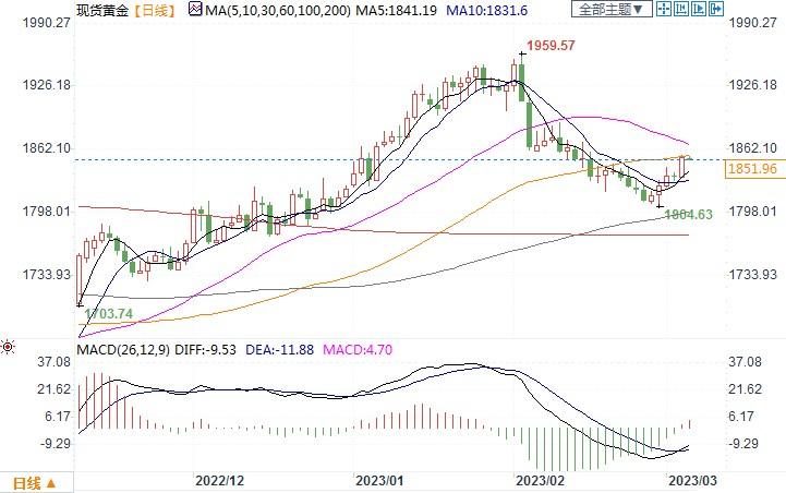 现货黄金报1851.95美元/盎司