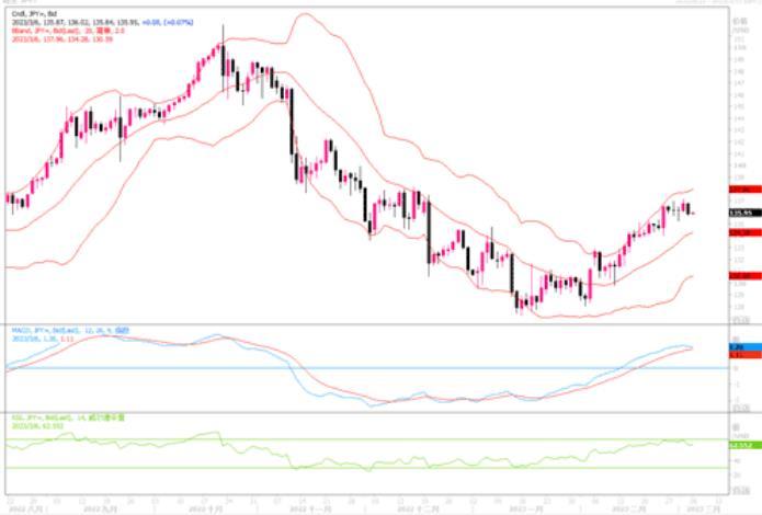 美元兑日元在137.00多次遇阻,技术指标MACD信号线似有死叉出现,短线须留意