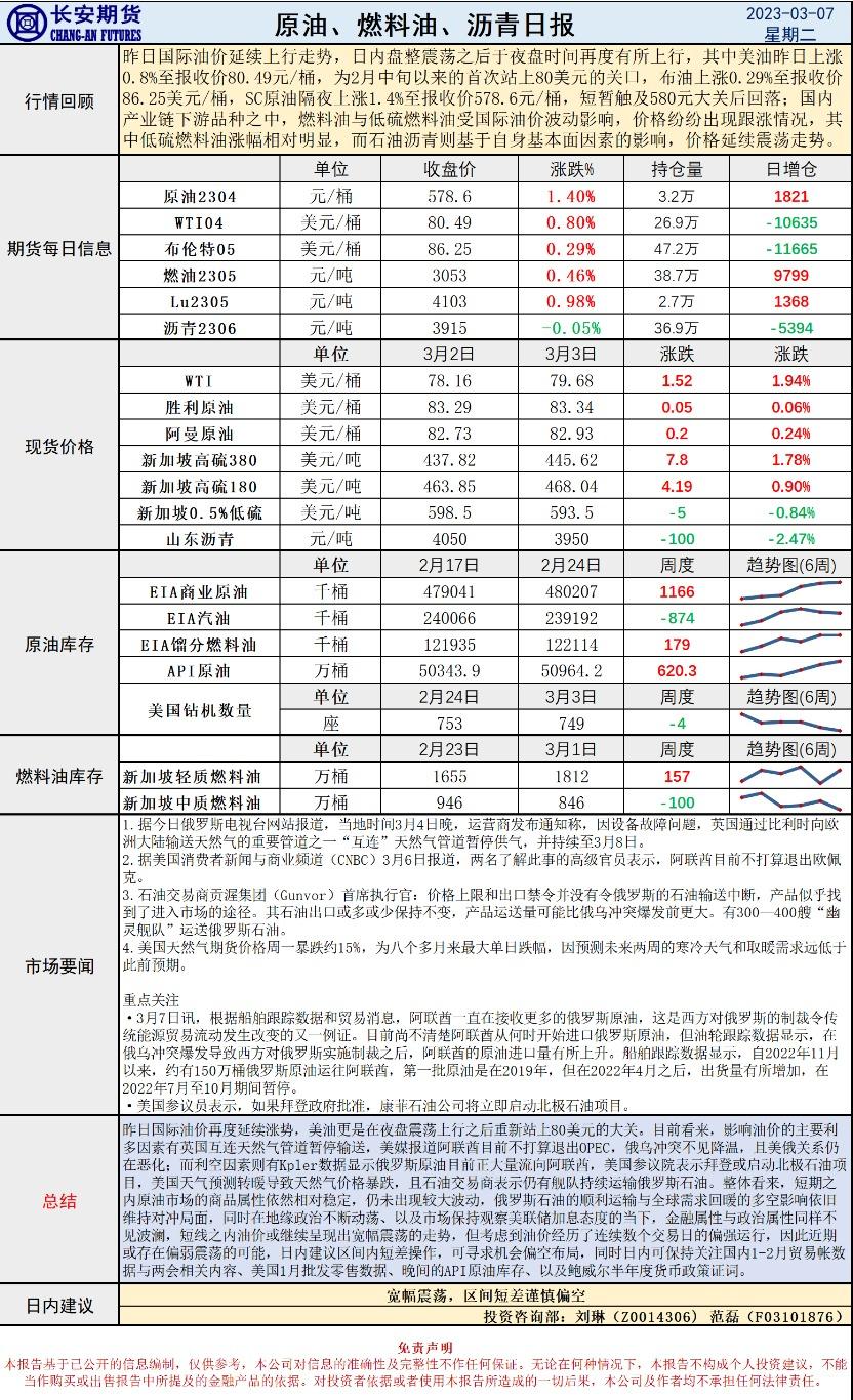 3月7日,长安期货发布原油早评,认为原油将宽幅震荡,建议区间短差谨慎偏空。