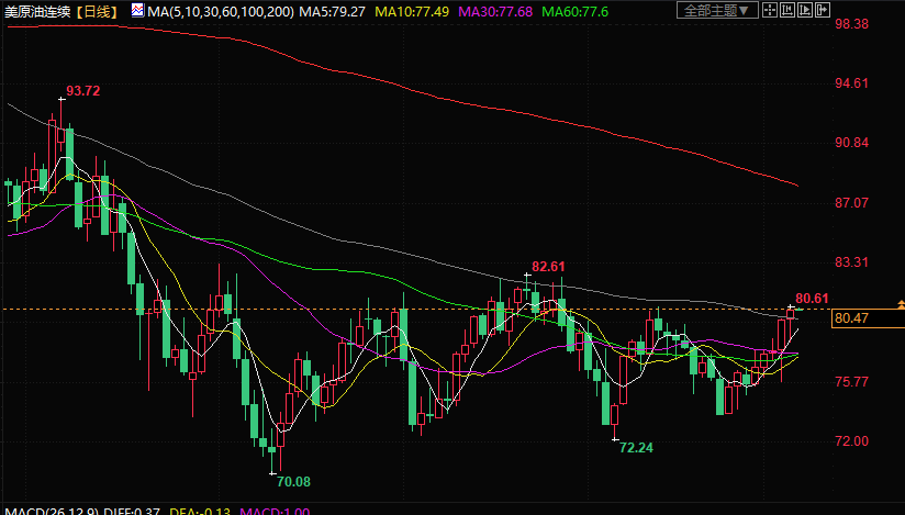 汇通财经APP讯——3月7日(周二)亚市盘初,美油交投于80.45美元/桶附近;油价周一小幅走高,从早盘的跌势中反弹,因为在休斯顿举行的一次能源会议上,石油企业高管讨论了供应紧张和对需求上升的希望;投资者还等待美联储主席鲍威尔本周的证词。