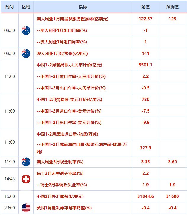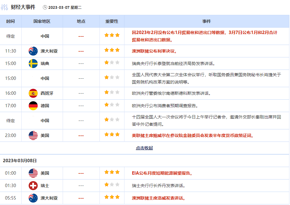 周二重要经济数据和风险事件前瞻