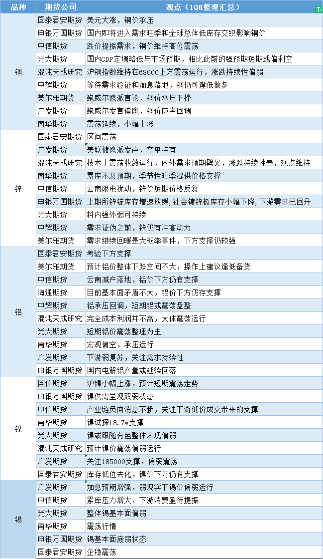标题:期货公司观点汇总一张图:3月8日有色系(铜、锌、铝、镍、锡等)