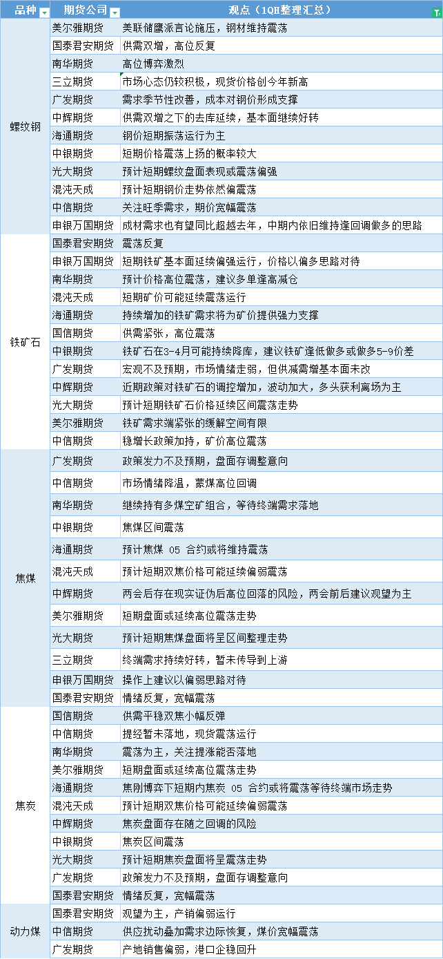 标题:期货公司观点汇总一张图:3月8日黑色系(螺纹钢、焦煤、焦炭、铁矿石、动力煤等)
