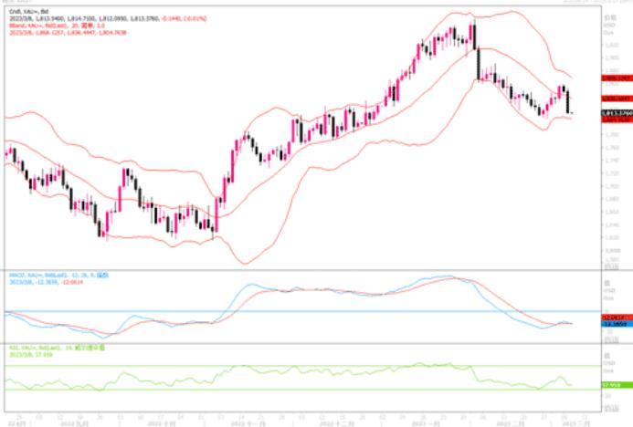 现货黄金出现巨幅下跌2%,全日以最低价收盘于1813.36美元水平处,日内高低幅度逾30美元。