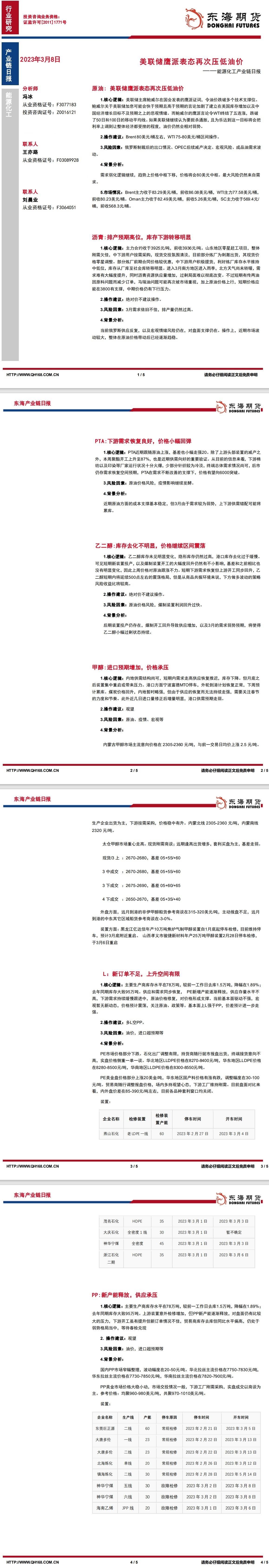 标题:【东海期货3月8日产业链日报】能化篇:美联储鹰派表态再次压低油价