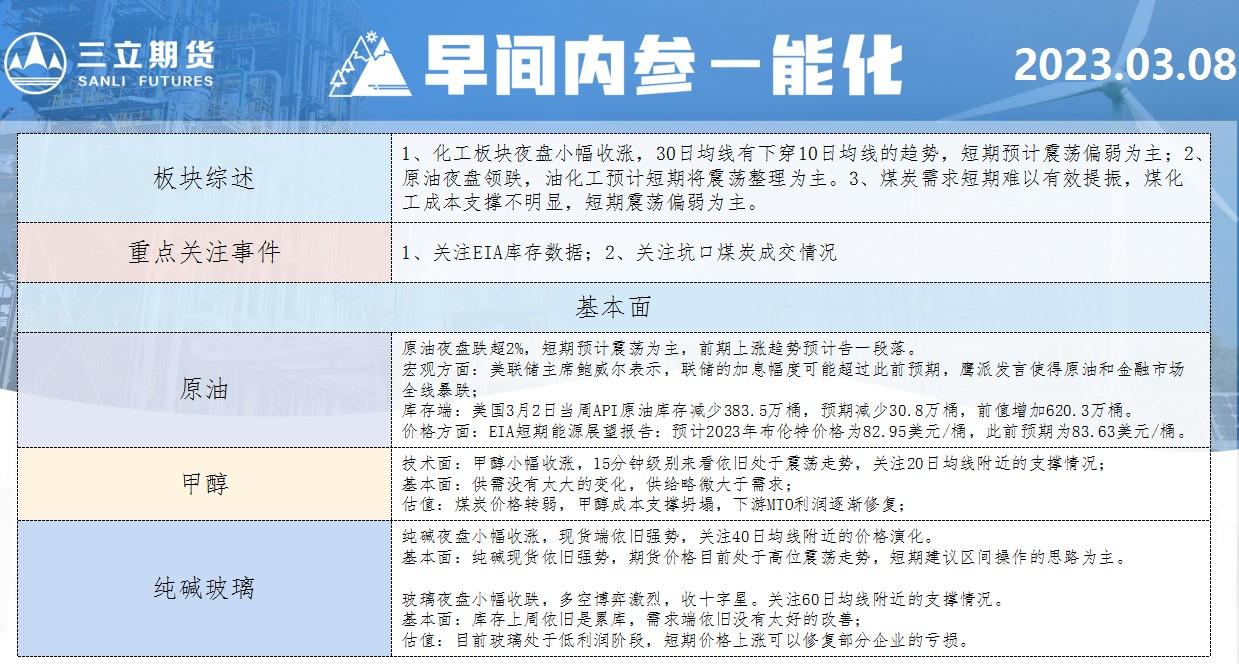 三立期货早间内参显示,原油短线预计震荡为主,甲醇成本支撑坍塌;玻璃多空博弈激烈。