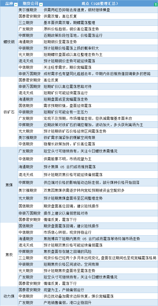 标题:期货公司观点汇总一张图:3月9日黑色系(螺纹钢、焦煤、焦炭、铁矿石、动力煤等)