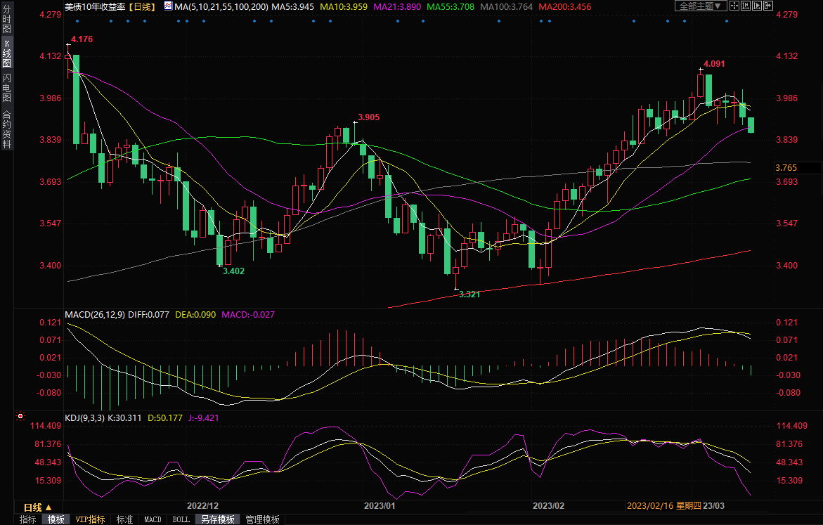 芝加哥BMO Wealth Management首席投资策略师Yong-Yu Ma说:“在美联储预期上升的环境下,市场对通胀保持粘性感到担忧,而且担心金融体系获利下降,这意味着收紧流动性将对整个经济产生更大的连锁反应。我们看到的所有这些东西都在发挥作用,10年期国债收益率大幅下降,因为即使美联储预计会加息,中期轨迹看起来也比预期要软。”