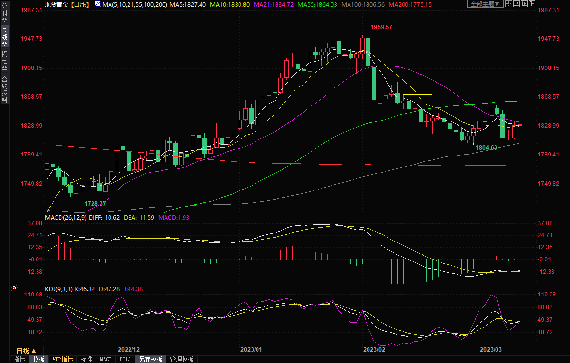 整体来看,市场对美联储3月份加息50个基点的预期快速回落,美元回落,美债收益率大跌,给金价提供了反弹机会,金价短线下行风险有所减弱,失守100日均线1806.6前,金价后市有望重拾涨势,但预计在晚间非农数据出炉前,金价反弹空间还受到限制。金价料等待晚间非农数据公布后,再选择后市的进一步方向。北京时间10:09,