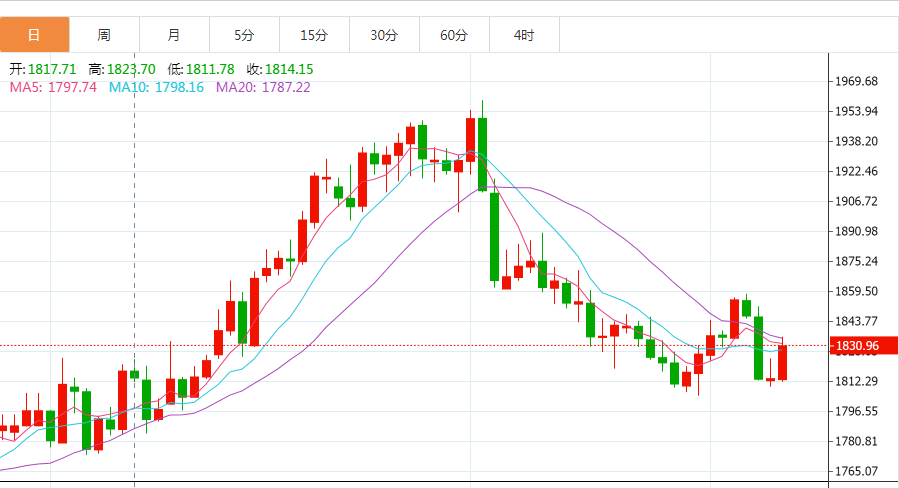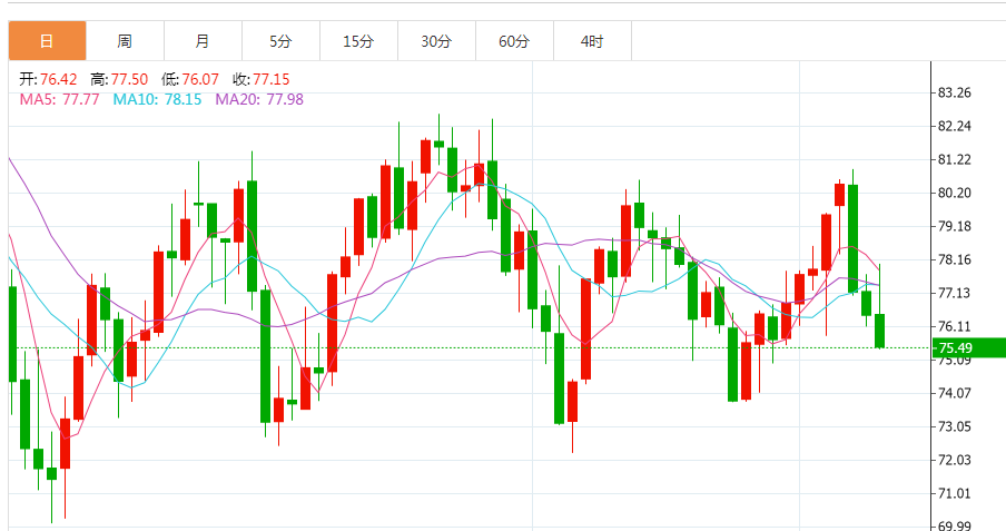 商品收盘情况:布伦特原油期货下跌1.3%,结算价报每桶81.59美元,为2月22日以来的最低收盘价;美国原油期货下跌1.2%,结算价报每桶75.72美元,为2月27日以来最低收盘价。美国期金上涨0.9%,报收于1834.60美元。