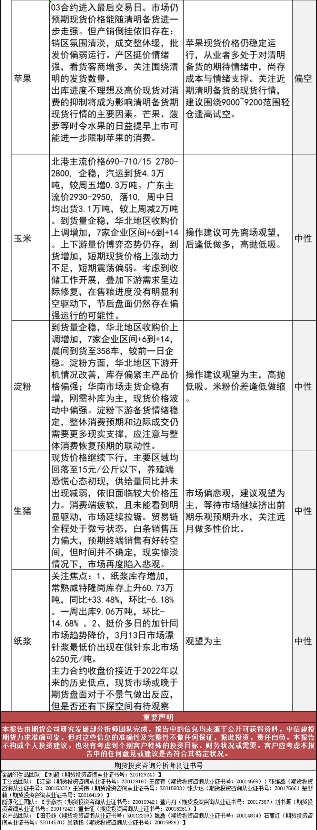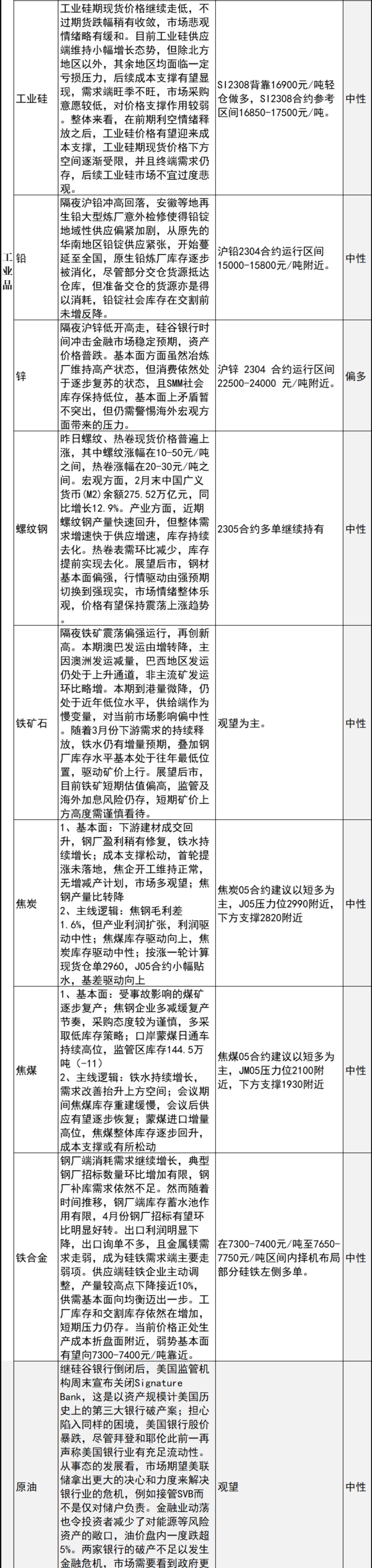 标题:中信建投期货3月14日早间交易策略