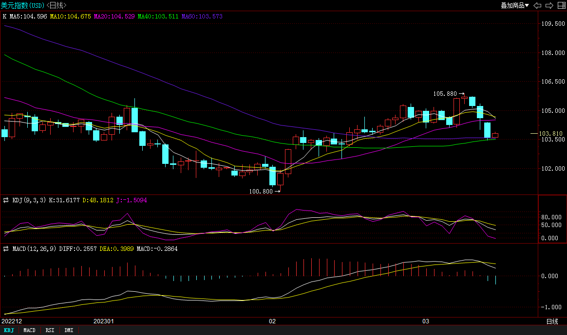 美元指数下跌近1%,一度创近一个月低点至103.47,因两年期美债收益率暴跌,削弱了美元的吸引力,市场大幅重新定价美联储加息前景,焦点转向周二美国CPI数据。