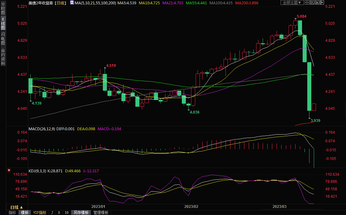 硅谷银行爆雷拖累两年期美债收益率暴跌击穿4%,收益率曲线走陡