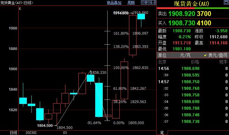 汇通财经APP讯——周二(3月14日),国际金价从隔夜录得的2月3日以来高位1914.48美元/盎司小幅回落,但仍交投于1900美元重要关口上方,因市场预计美联储将在两家大型地区性银行倒闭后放慢加息步伐。金价后市可能上摸1929美元。