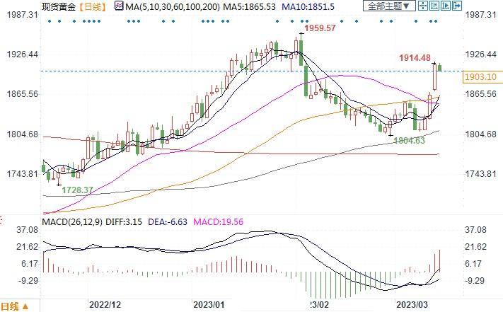 在硅谷银行和签名银行关闭的冲击发生之后,金价飙升至五周高位,目前轻松交投于1900美元水平以上。据分析师称,金价还有更多上行空间,但必须先突破某些技术水平。