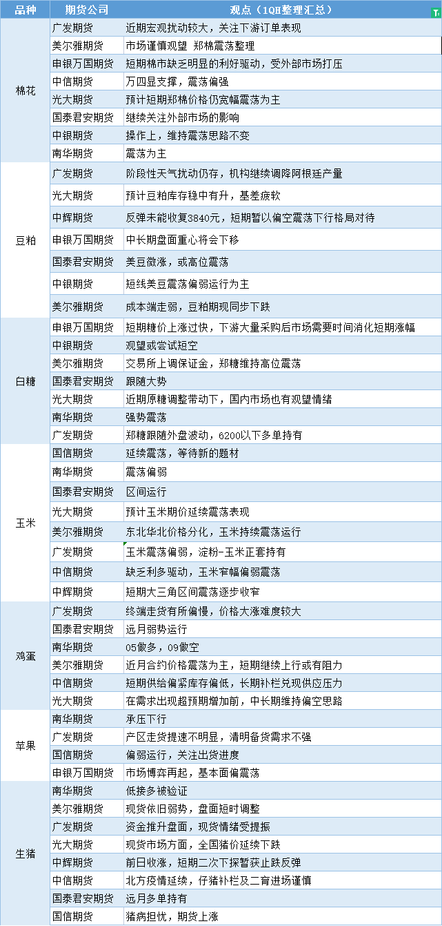 标题:期货公司观点汇总一张图:3月15日农产品(棉花、豆粕、白糖、玉米、鸡蛋、生猪等)