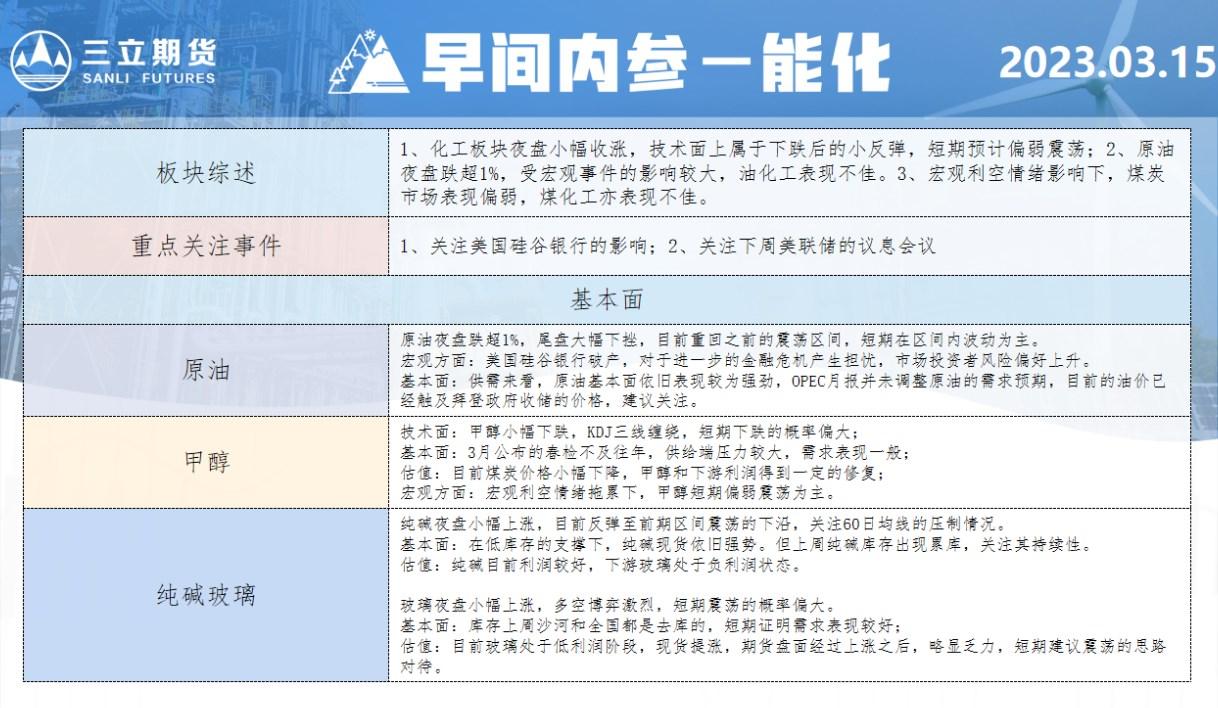 标题:三立期货3月15日早间内参——能化