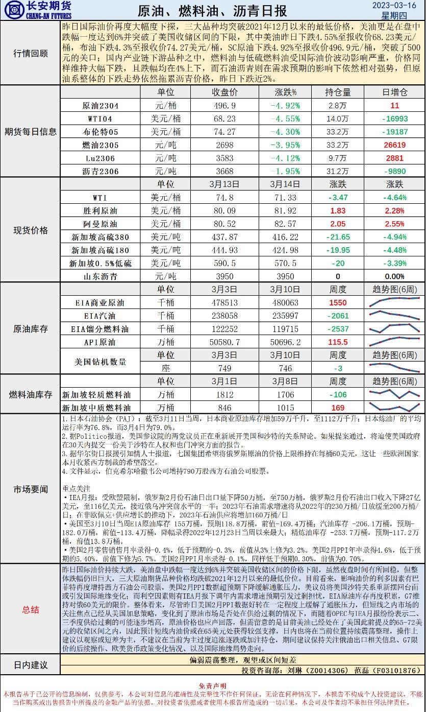 3月16日,长安期货发布原油早评,认为原油将偏弱震荡整理,建议观望或区间短差。