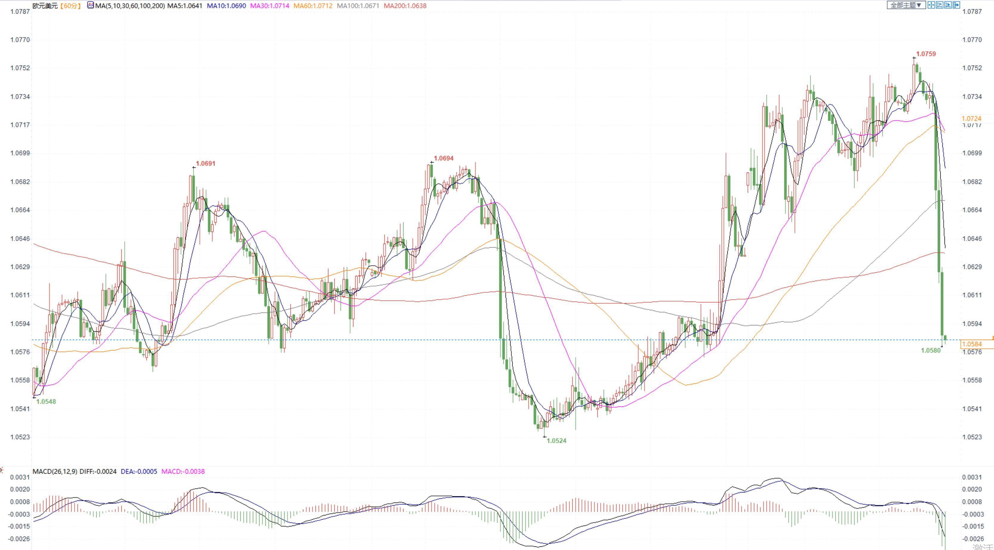 欧元兑美元报1.0583/85。