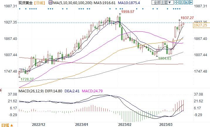 汇通财经APP讯——过去一周黄金市场的看涨情绪显著升温,金价升至六周高位,这是因为投资者在美国两家商业银行倒闭后寻找避险资产。