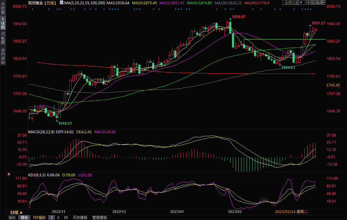 现货黄金小幅上涨,目前交投于1927.68美元/盎司附近,对欧美银行业危机的担忧仍在给金价提供避险支撑。不过,在周四瑞士央行出手救助瑞士信贷、美国最大的11家银行注资美国第一共和银行后,市场的担忧情绪已经较本周初有所降温,而且欧洲央行坚持加息50个基点,美国经济数据表现也相对强劲,增加了美联储下周加息25个基点的预期,投资者需要提防金价冲高回落风险。