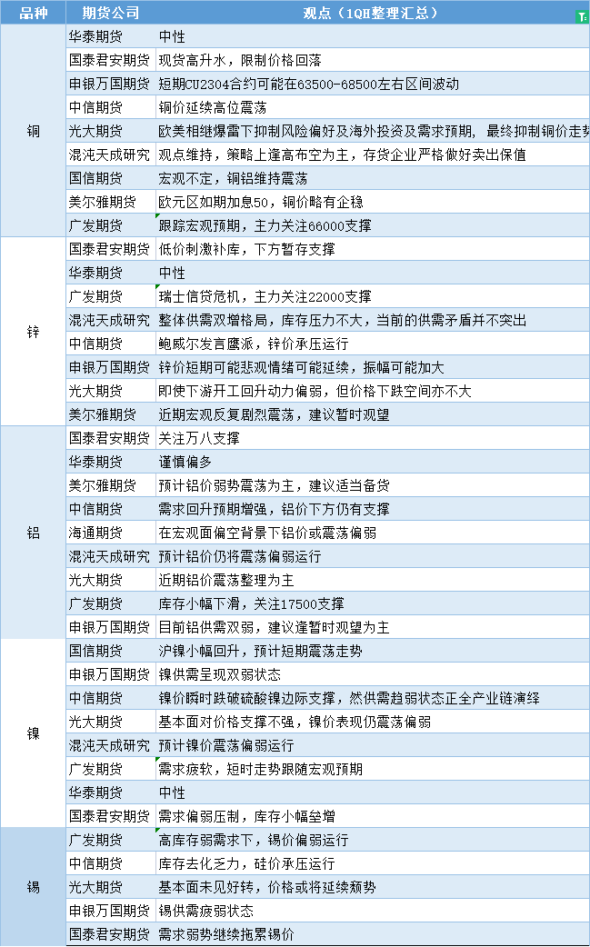 标题:期货公司观点汇总一张图:3月17日有色系(铜、锌、铝、镍、锡等)