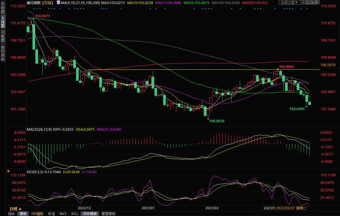 美元指数延续跌势,目前交投于102.31附近。因美联储一如预期将其关键利率提高25个基点,并暗示暗示即将暂停加息。