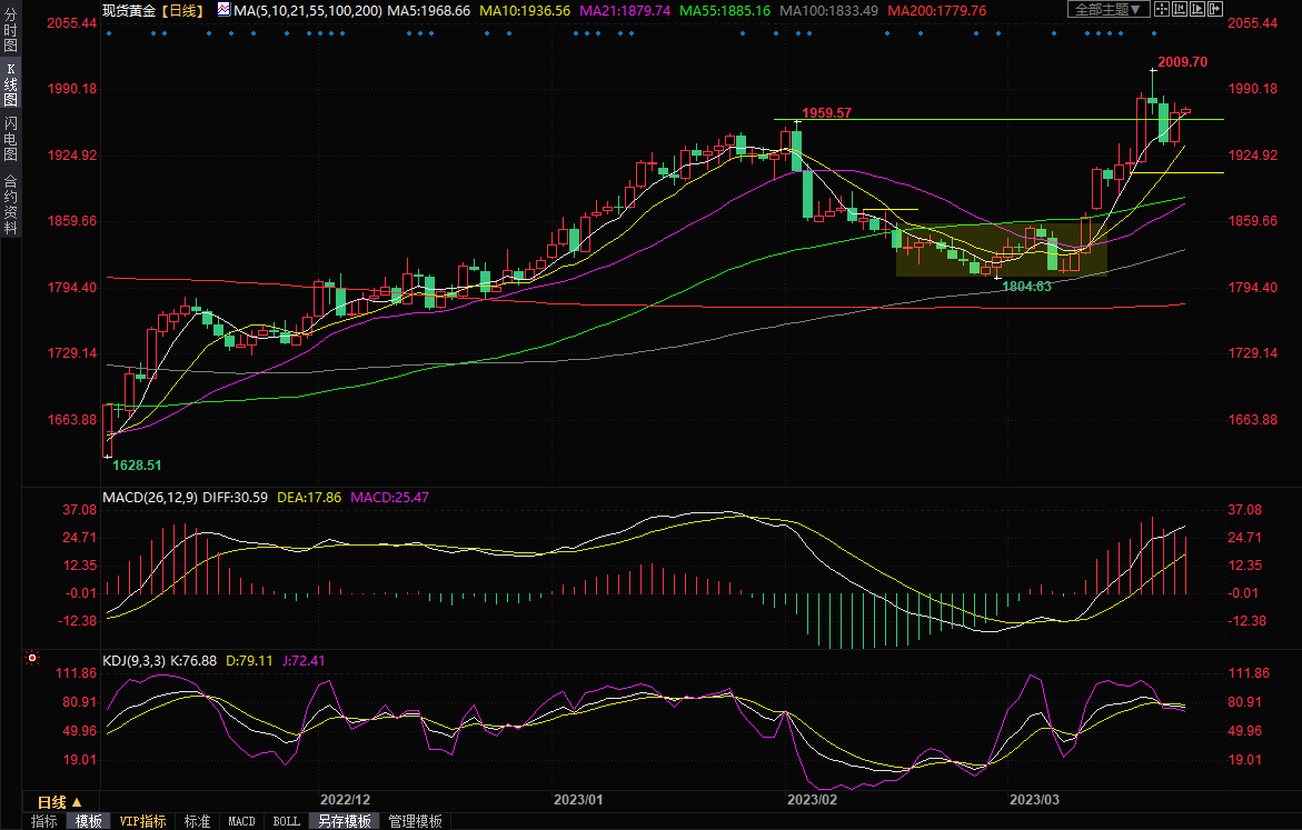 整体来看,美联储虽然如期加息25个基点,但暗示未来将暂停加息,整体偏向鸽派,这给金价提供支撑,而且鲍威尔和耶伦的讲话都令市场对欧美银行业危机的担忧情绪回升,黄金的避险买需再度增加,金价短线有望再度上探2000关口附近阻力,如果顶破该阻力,则有望启动新一轮涨势。北京时间10:21,
