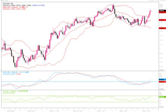 欧元兑美元上涨0.87%,至1.0861,盘中最高触及1.0912。北京时间周四凌晨,美联储一如预期将其关键利率提高25个基点,并暗示今年仅将再有一次加息。本月矽谷银行和Signature银行突然倒闭推动了美联储最新声明中的一个关键转变。声明不再包括“继续加息”可能是合适的这样的措辞。自2022年3月16日决定启动加息周期以来,每一份政策声明中都有这样的措辞。市场分析认为美联储确实走上了阻力最小的道路,宣布加息,但也给出了对未来一年利率的相对鸽派的前景。这基本上给了市场想要的东西-即美联储加息周期行将到头了。而欧洲方面,昨日欧洲央行管委穆勒表示,不认为会出现大规模银行危机;欧元区通胀仍旧过高,将毫不犹豫地对抗通胀。讲话显示欧央行在随后的加息路径上,似乎要比美联储显得更为坚决。欧美央行的表态真是此消彼长,欧元走势前景值得期待。技术图形上,无论4小时还是日线图上,
