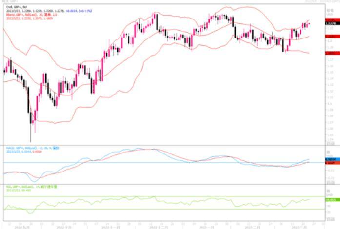 英镑兑美元周三跳涨0.3%,至1.2250,盘中一度高抵近1.2335水平。英国国家统计局周三公布的数据显示,英国2月消费者物价指数(CPI)较上年同期涨幅意外地从1月的10.1%升至10.4%。路透调查分析师此前预测,2月CPI同比涨幅将降至9.9%。 英国通胀率意外跳升,打破了之前连续三个月的下降趋势。这对英国央行来说是一个真正的问题,该央行将需要继续加息。货币市场显示,英国央行周四召开政策会议时,将利率提高25个基点的可能性为61.6%,高于周二的57%左右。虽然在息口方面能给到英镑一定的支持,但也不乏隐忧,那就是若通胀保持高水平增长,若继续加息加以控制,又导致经济陷入衰退之中。因此不少分析机构认为,本周极大可能将是英央行最后一次加息。但由于隔夜美联储已现行显露鸽派加息举动,美元走软提携英镑相应的继续得以走高。从日线图上观察,镑美虽有上升,但汇价仍离短期均线不远,各类技术指标呈中性化,显示英镑的上冲动能不是太强。也许是顾虑到周四英央行的利率会议会出现变故,抑制了英镑上行表现。日内留意英央行利率决议和今后政策的表述。