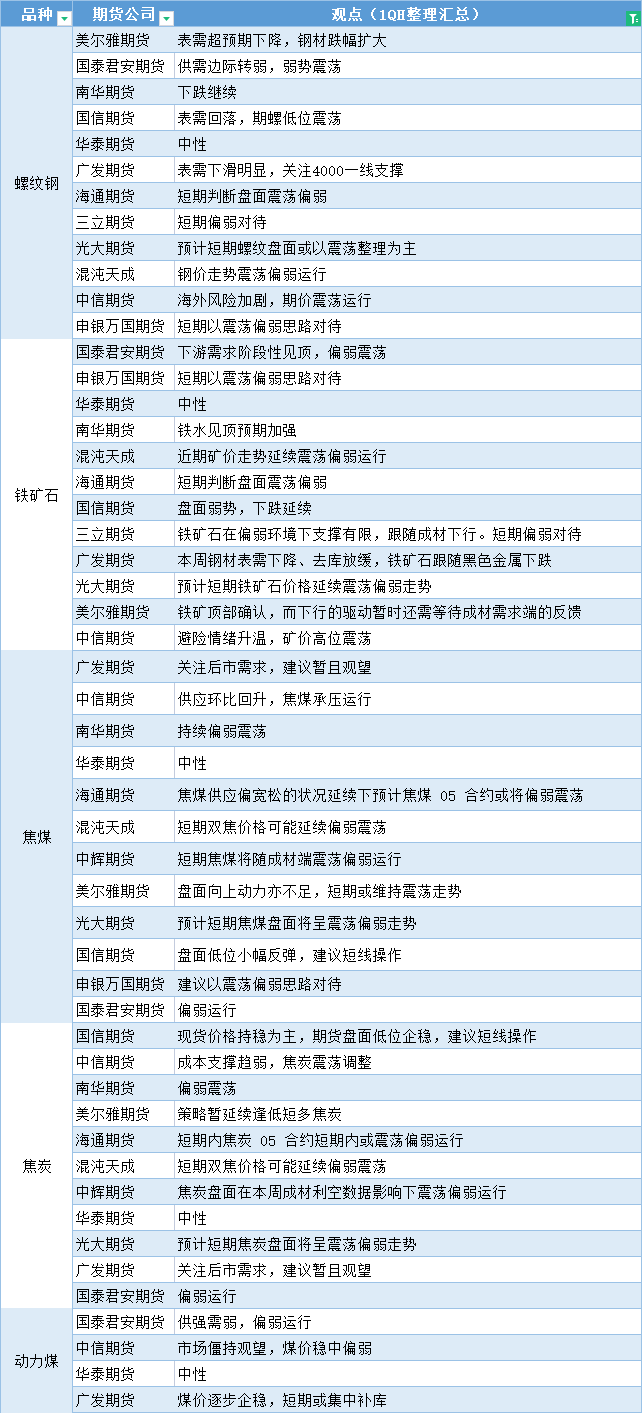 期货公司观点汇总一张图:3月24日黑色系(螺纹钢、焦煤、焦炭、铁矿石、动力煤等)