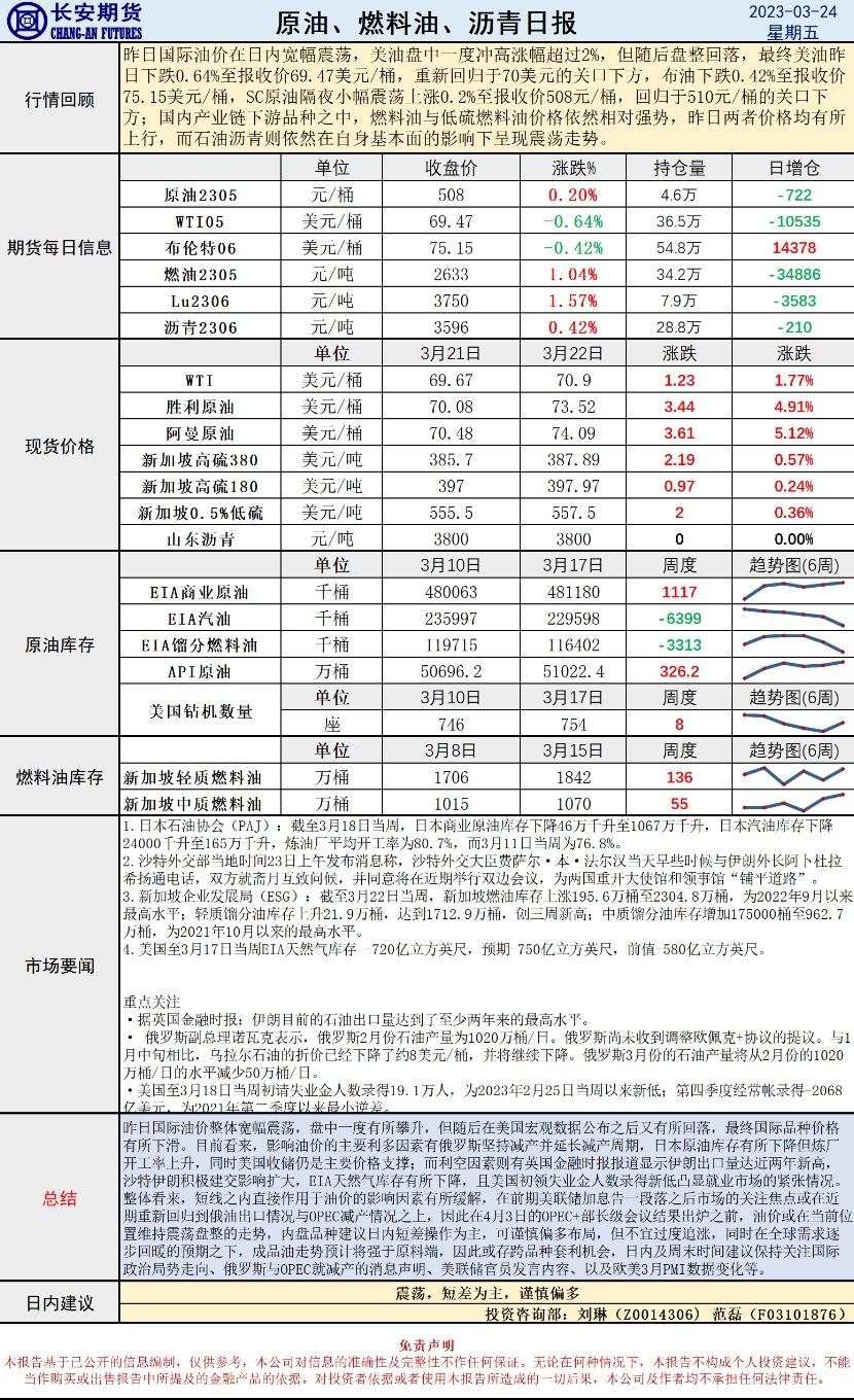 3月24日,长安期货发布原油早评,认为原油将宽幅震荡,短差为主,谨慎偏多。