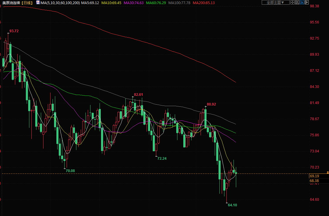 布伦特原油结算价下跌1.2%,至74.99美元。美国原油期货下跌1%,至每桶69.26美元。