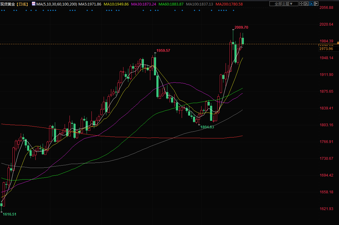 商品收盘情况:美国期金下跌0.6%,结算价报1983.80美元,